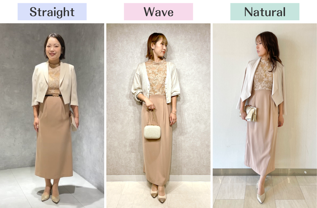 骨格3タイプのモデルさんに合わせてコーディネートしました。